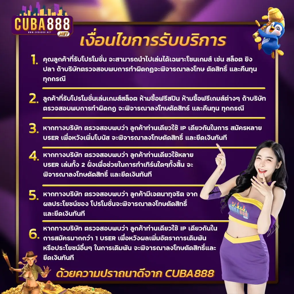 โปรโมชั่น สิทธิพิเศษสำหรับสมาชิก CUBA888 เท่านั้น